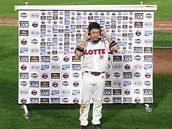 Son Ah-seop is an outfielder. He is one of the most consistent hitters in the KBO, having hit above .300 ten years in a row (from 2010 to 2018), and winning the KBO League Golden Glove Award four consecutive times.[2] His .322 lifetime batting average ranks in the top ten all-time for the KBO.