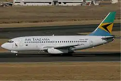 Air Tanzania was relaunched in September 2007 with two leased Boeing 737-200s in its fleet. The new brand represented the company's name, Mount Kilimanjaro and the airline's international destinations. The introduction of the airline's new logo on a leased Airbus A320 bore the image of the imposing giraffe – Tanzania's national icon, to replace the South African Airways flag symbol.[34][35] On 1 October 2007, the revamped Air Tanzania made its inaugural flight on the Dar es Salaam to Mwanza via Kilimanjaro route.[36]