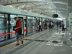 Airport East station (simplified Chinese: 机场东站; traditional Chinese: 機場東站; pinyin: Jīchàng Dōng Zhàn; Jyutping: Gei1 Coeng4 Dung1 Zaam6) is an interchange station for Line 1 and Line 12 of Shenzhen Metro in Shenzhen, Guangdong Province, China. Line 1 platforms opened on 15 June 2011 and Line 12 platforms opened on 28 November 2022.