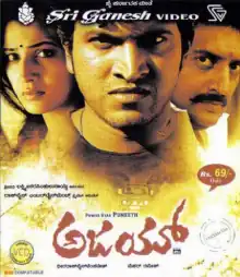Ajay is a 2006 Indian Kannada-language action film directed by Meher Ramesh. A remake of the Telugu film Okkadu (2003), the film stars Puneeth Rajkumar, Anuradha Mehta (in her Kannada debut), and Prakash Raj (reprising his role from the original, as well as from the Tamil remake of the original). The music was composed by Mani Sharma with cinematography by Vasu and editing by Marthand K. Venkatesh. The film released on 4 May 2006 and was a commercial success at the Box office.[1]