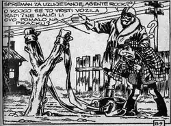 There is a fake comic in circulation which features Yugoslav lifetime president Josip Broz Tito in a story line in one of the issues. Tito is portrayed as Number One's old acquaintance who often engaged in shady activities.[6] The entire issue was allegedly banned from publishing in Yugoslavia.[5] The fake issue was published decades later after the country disintegrated.[7] However, apart from decent drawing of fake characters, and borrowed dialogue from various issues, giveaway is the issue number (#39), which in fact is a comic called Belle Epoque.