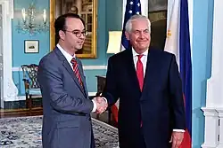 - ^ Sabillo, Kristine Angeli (May 18, 2017). "Duterte administers oath to new DFA chief Cayetano". Philippine Daily Inquirer. Retrieved May 18, 2017.