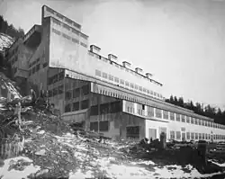 The average number of employees during 1913 was 900.[8] It was announced on Nov. 21, 1914, that the first section of the company's reduction works would be in operation after January 1, 1915.[9] The first unit started up on February 18, 1915. By June 30, 1915, 4000 tons of ore were being crushed daily.[10] The Alaska Juneau Mining Company purchased all of the Alaska-Gastineau Mining Co. properties and assets in 1934.[11]
