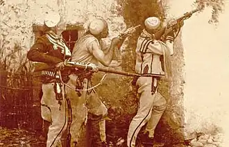 In 1879, Zenel Ahmet Demushi of the Geghyseni tribe, fought with 40 members of the family against Montenegrin forces led by Marko Miljanov in Nikšić .[76] The conflict intensified in 1880 when the Albanian irregulars fought under Ali Pash Gucia against the Montenegrin forces led by the brother of Marko Miljanov, Teodor Miljanov, the battle lasting five hours, according to letters written by two local Albanians from Shkodër who participated in the battle.[77]