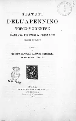 • Statuti dell'Appennino tosco-modenese (in Italian). Roma: E. Loescher e C. 1913.