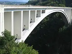 • the new La Caille Bridge (1928), on the ravine of Usses, in the Alps, close to Annecy. This is a 140-m-span concrete arc bridge,