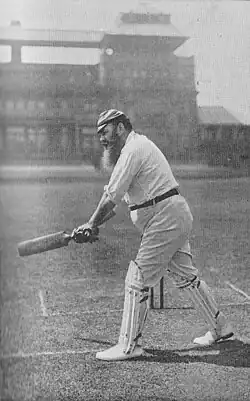 The trend of bowling results reversed at the start of the 1898 season, beginning with a badly rain-affected match between Yorkshire Colts and Nottinghamshire Colts at Nottingham on 9–10 May in which both men figured; Cordingley performed economically, opening the bowling for Yorkshire in both innings and taking 1 wicket for 14 runs from 13 overs in the match, but Rhodes was more deadly though more expensive, claiming 4 victims for 37 runs off 17 overs, three of them stumped.[32][33][34] The poor weather in Nottingham had though "prevented any real estimates of their abilities being made",[35] and the turning point came two days later in a high-profile match against Marylebone Cricket Club (M.C.C.) at Lord's which began on 12 May.[36] This was a far more prestigious affair, in which W. G. Grace played, i.e. in a class of cricket to which the two Yorkshire pretenders Cordingley and Rhodes included in the squad were "practically strangers".[35] According to one story, Yorkshire captain Lord Hawke and leading amateur cricketer Stanley Jackson could not agree on which player to leave out and chose Rhodes merely on the result of a coin toss. Hawke however later denied this version of events; he claimed always to have believed Rhodes to be the better bowler and said that Jackson came to the same view after seeing Rhodes bowling during practice.[24] Match reports at the time in the mainstream press relate instead that Cordingley had actually been selected to play,[37] and it was only on the arrival of all-rounder Jackson "at the last moment"[38][39] that Cordingley lost his place, while Rhodes had already replaced the absent all-rounder Milligan in the Yorkshire team. Jackson, although an exceptionally talented cricketer who had captained Harrow and Cambridge, and would go on to captain Yorkshire and England, was also a powerful, well-connected aristocrat who would at different future times become Chairman of the Conservative Party, President of the M.C.C., and President of Yorkshire,[40] so it is possible that non-cricketing factors were (also) at work, especially as it appears that the final decision had to be made at the last minute prior to play beginning. Whatever the reasons, Cordingley had to be content with a role as the twelfth man, his only minor consolation perhaps being getting the opportunity to take to the hallowed turf on the second day as substitute fielder for Haigh while the great W. G. Grace was at the crease.[41] Rhodes meanwhile fully justified his selection by taking 6 for 63 in the match.[42]