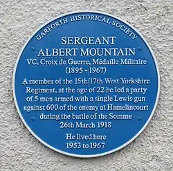 Albert Mountain VC (19 April 1897 – 7 January 1967) was an English recipient of the Victoria Cross during the First World War, the highest and most prestigious award for gallantry in the face of the enemy that can be awarded to British and Commonwealth forces.