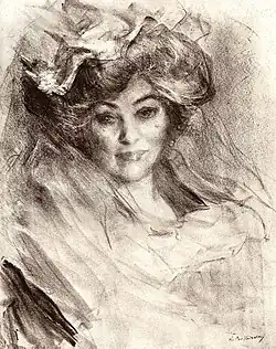 Belleroche was financially independent and did not need or desire to obtain work through commissions. Instead, he chose whom he would paint, which included Japanese wrestler Taro Miyake; paintress Victorine Meurent, who modelled also for Edgar Degas and became famous as his Olympia; dancer and spy Mata Hari; and acrobat Cha-U-Kao.[4] He then sought to be more independent of Sargent's artistic influence, and was possibly affected by the Labouchere Amendment of 1885 that criminalised sexual relationships between men and was used in 1895 against Oscar Wilde,[7] who was a friend of Belleroche and Sargent.[4]