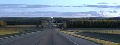 The original alignment of Highway 22 started at Highway 2 (Macleod Trail) south of Calgary and travelled west to Priddis, where it turned south to Turner Valley and terminated at Highway 7 in Black Diamond.[5] In the 1970s, the province of Alberta began upgrading a series of roads to form a north–south, all-weather highway west of Highway 2. Beginning in c. 1972, the road connecting the Trans-Canada Highway and Cochrane was designated as part of Highway 22.[6] In c. 1973, the numbered secondary highway system appeared, with the road between Cochrane and Highway 27 being designated as Highway 922 (the paved section between Cremona and Bottrel became Highway 22) while the road between Priddis and Bragg Creek was briefly designated as Highway 553,[7] becoming Highway 922 in 1975.[8] Throughout the remainder of the 1970s, Highway 922 was extended from Highway 3 in the south to Highway 57 near Drayton Valley in the north.[8] Coinciding with Highway 922 being paved in c. 1976, Highway 22 was extended from Cochrane to Cremona,[9] while the following year it replaced Highway 922 between the Trans-Canada Highway and Priddis; as part of the project, the section between Priddis and Macleod Trail was renumbered as Highway 22X.[10] In c. 1980, all remaining gravel sections of Highway 922 were reclassified as Highway 22, along with a 18 km (11 mi) section of Highway 7 between Black Diamond and Longview, a 56 km (35 mi) section of Highway 57 between Drayton Valley and Entwistle (the remaining 27 km (17 mi) section of Highway 57 became part of Highway 39) and Highway 755 between Highway 16 and Mayerthorpe.[11] Throughout the 1980s, Highway 22 was paved, with all but a small section near Chain Lakes Provincial Park being completed by 1990 (the latter was completed in the mid-1990s).[12][13]