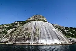 Due to that, archeological remains indicate Alcatrazes was visited by pre-Columbian peoples.[34] Its first known visitors, Tupinambá people, named the place "Uraritã" ("land of birds").[10] There are five archeological sites in the island, with remains of precolonial peoples and ruins dating back to the early 20th century - these are what's left of some buildings that would serve local lighthouse keepers.[35] These attempts to occupy the islands produced the first significant impacts in the local flora, which is now recovering in the spaces that were previously deforested.[36]