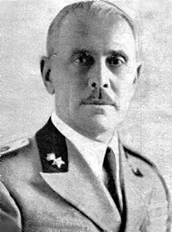 After promotion to Brigadier General in 1927 he held the 3rd Cavalry Command until 1930 and was then head of the Horse and Veterinary Service of the Ministry of War from 1930 to 1932; on 25 February 1932 he was promoted to Major General and from October 1932 to October 1933 he commanded the Military Division of Trieste, and later the 2nd Cavalry Division "Emanuele Filiberto Testa di Ferro" from October 1933 to March 1935, when he was appointed first aide-de-camp to the Prince of Piedmont, Umberto of Savoy.[10][11][12] Having been promoted to lieutenant general on 1 January 1936, he held the command of the army corps of Florence from 15 October 1938 to 10 June 1940, when he assumed that of the VII Corps, mobilized for operations against France after Italy's entry into World War II, until 1 September 1940.[13][14][15] On 26 January 1941, after a period in service at the Ministry of War for special duties, he assumed command of the Regia Guardia di Finanza, which he held until 12 March 1945.[16][17][18] He died in Rome in 1946.[19][20][21]