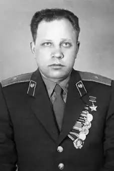 Alexander Andreyevich Kolesov (Russian: Александр Андреевич Колесов; 1 February 1922 – 31 July 1994) was a Soviet officer and Hero of the Soviet Union. Kolesov was awarded the title for his actions during the Battle of the Dnieper. Due to the wounds he suffered during the fighting, Kolesov was not able to hold another combat post during the war. However, he returned to the Army postwar and eventually retired as a colonel. He later worked as a quality controller within the Soviet military equipment procurement organization.[1]