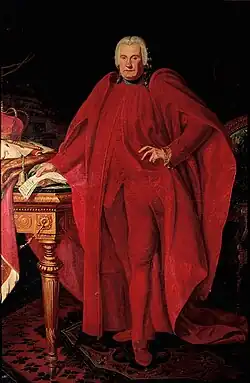 Pallavicini studied jurisprudence, theology, and philosophy at the Collegio Clementino in Rome, and by age 25, he had entered the ruling council, filling various positions in the Genoese government, including governor of Polcevera and three times as Senator. He rose to dogal power with the elections of the Major and Minor Council of 30 July 1789, the one hundred and thirty-sixth in two-year succession and the one hundred and eighty-first in republican history. His Dogate was marked by the management of new disputes related to the borders with the Duchy of Savoy and, again, as "observer" of the first revolutionary echoes from neighboring France. Other important facts during the mandate of Doge Pallavicini are the minting of new silver and gold coins; the purchase of a new English frigate to counter pirate assaults by the "Compagnia del Soccorso" and the donation of an Arab horse to the doge by the Bey of Constantine. He ended his term on 30 July 1791. Napoleon tried to cultivate the statesman by granting him the French Legion of Honor.[1] Pallavicini presumably died in Genoa during 1805.[2][3]
