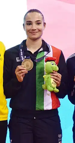Alessandra Mangiacapra (born 10 July 1999)[1] is an Italian karateka. She won one of the bronze medals in the women's kumite 61 kg event at the 2023 European Games held in Poland.[2] She also won one of the bronze medals in her event at the 2022 Mediterranean Games held in Oran, Algeria.[3]
