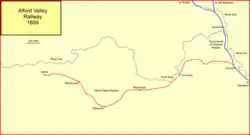 The original authorised route had been as far as Alford Bridge, but the shortage of money brought home awareness that a further mile of railway to serve a hamlet was an unnecessary expense. In fact construction of this final section was abandoned by the Alford Valley Railway Amendment Act 1862 (25 & 26 Vict. c. lxxxvii).[15]