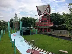 The garden has various themes, with Lychee as their main theme, the special farm produce of Fenyuan.[1] There are 22 Lychee figurines installed around the garden. There are floral fragrance, hearts and arrows, Alice's wonderland, smile of princess, laughter machine, Lychee baby, dream station etc. The garden also features a restaurant and Lychee queen gift shop.[2]
