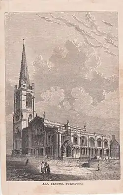 All Saints' Church, Stamford is a parish church in the Church of England, situated in Stamford, Lincolnshire, England. It is a Grade I listed building.[1] The church is on the north side of Red Lion Square which was part of the route of the A1 until the opening of the Stamford bypass in 1960.