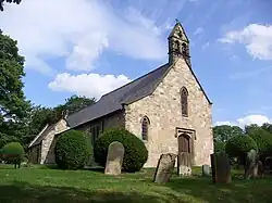 The church is built of sandstone with slate roofs, and consists of a nave, a north aisle, a chancel and a vestry. On the west gable is a bellcote, and there is a cross on the east gable. The north side of the chancel has two early lancet windows, and two of the three on its south side are also original. The east window, rebuilt by Fowler, has three stepped lancets and stained glass by Charles Eamer Kempe. Other stained glass is by Clayton and Bell, and the west window is by Rosemary Rutherford. There is also an original doorway in the north wall, originally to the outside, later to the vestry, but now blocked. Inside, there is an Easter Sepulchre dating from about 1300, an octagonal font probably designed by William Butterfield, a piscina and several memorials.[1][4]