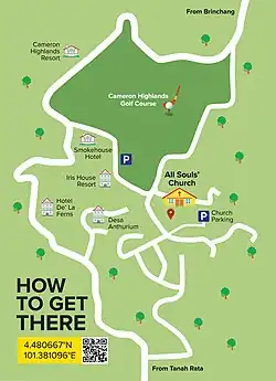 2. ^ "All Souls' Church, Cameron Highlands, Malaysia, Google map". Google Inc. Retrieved 8 April 2018.