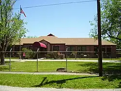 The Almeda School District was established in 1893; students originally attended school in a barn and utilized hay stacks as desks. A white one room school building opened in 1894.[22] The first permanent school in Almeda opened in 1901.[23] In 1905 Almeda's school had one teacher and 31 students. State highway maps indicated two schools within one mile of Almeda in 1936.[1] During that year the Almeda area became a part of HISD. In 1981 a new Almeda Elementary School campus opened.[23] The current Almeda campus opened in February 2011.[24] Until the fall of 2011, residents east of Almeda Road were zoned to Woodson K-8 School,[19][20] while residents west of Almeda Road were zoned to Lawson Middle School.[21][25] From fall 2011 to fall 2012, all students were zoned to Lawson Middle School. Prior to fall 2012, all students were zoned to Almeda Elementary School. Beginning in fall 2012 portions of the old Almeda Elementary and Lawson zones were rezoned to Reagan K-8.[26]