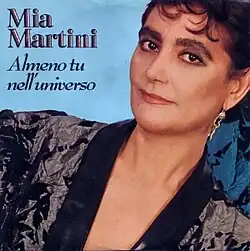 "Almeno tu nell'universo" (Italian pronunciation: [alˈmeːno ˈtu nnelluniˈvɛrso]; transl. "At least you in the [whole] universe") is a song written by Bruno Lauzi and Maurizio Fabrizio and recorded by Italian singer Mia Martini, who released it as a single in 1989 and included the track in her self-titled album Martini Mia. Martini performed the song for the first time at the Sanremo Music Festival 1989, where it placed 9th in a field of 24, but received the Critics' Award, which would be named after Martini herself after her death. The song later became a commercial success, being certified platinum by the Federation of the Italian Music Industry,[1] and is now considered a classic of Italian popular music.