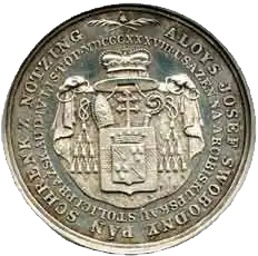 An 1838 medal commemorating the elevation of Alois Josef von Schrenk to the archbishopric of Prague.[1]