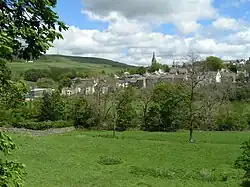 Alston lies within the North Pennines Area of Outstanding Natural Beauty, more than 16.3 miles (26.2 km) by road from the nearest town, Haltwhistle, and is surrounded by moorland.[2] Nearby villages include Garrigill and Nenthead. It is around 44.5 miles (71.6 km) west of Newcastle upon Tyne, 30.1 miles (48.4 km) south east of Carlisle, 19.7 miles (31.7 km) north east of Penrith, and 21.6 miles (34.8 km) south west of Hexham.