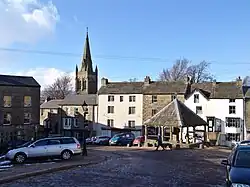 Although the town does not hold a regular market it still maintains the legal right to do so. The market cross, which acts as a focal point in the centre of town, was constructed in 1981 to replace one which was demolished by a wagon in January 1980. That earlier cross had itself replaced a cross of 1883 which was knocked down by a lorry in 1968.[18]