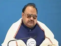 Altaf Hussain (Urdu: الطاف حسین; pronounced [əltaːf ɦʊseːn]; born 17 September 1953 in Karachi) is a British Pakistani politician who is known as the founder of the Muttahida Qaumi Movement. He holds United Kingdom citizenship and has been living in exile in the UK since the start of Operation Clean-up. Since 2015, he has been a fugitive from the Anti Terrorism Court of Pakistan on the charges of 'murder, targeted killing, treason, inciting violence and hate speech'. He went on trial in the UK in January 2022 for 'promoting terrorism and unrest through hate speech in Pakistan',[1][2] and was acquitted the next month.[3] He had fled the country in 1992 after a crackdown against his party was launched.[4][5][6][7]