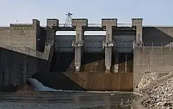 Alum Creek Dam is part of the flood control plan for the Ohio River basin. Construction of the dam was authorized by the United States Congress as part of the Flood Control Act of 1962. Dam construction began in 1970 and was completed in 1974 with the establishment of Alum Creek State Park.[2] The building of Alum Creek Dam created Alum Creek Lake, the body of water that Alum Creek State Park is adjacent to.[4]