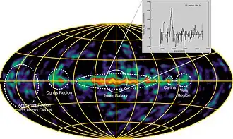 The gamma ray emission from the decay of aluminium-26 at 1809 keV was the first observed gamma emission from the Galactic Center. The observation was made by the HEAO-3 satellite in 1984.[5][6]