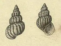 (Original description) The shell is turriculate and elevated, thick and strong. It contains five or six convex whorls. The suture is deep and distinct. The shell is externally ornamented with 10-12 vertical and obtuse ribs and is transversely striated. The striae or ridges are few and elevated, carried over the ribs. The aperture is subcircular, with a thickened and marginate outer lip, denticulated within the aperture.