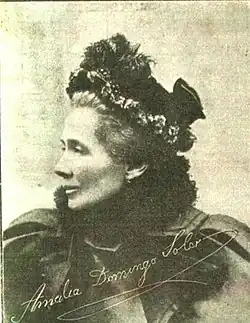 Amalia Domingo Soler (Seville, 10 November 1835 – Barcelona, 29 April 1909) was a Spanish writer, novelist, and feminist, who also wrote poetry, essays, short stories, as well as an autobiography, Memorias de una mujer. She is known for her involvement in the Spanish spiritist movement.[1] Her writings are characterized by poetic and delicate style. She is remembered for her book "Memories of Father Germano". She founded and edited a spiritist weekly, La Luz del Porvenir, characterized by its radical views and feminist orientation.[2] She also served as the editor-in-chief of Luz y unión which succeeded La Luz del Porvenir in 1900.[3] She dedicated more than 30 years to the dissemination of the teachings codified by Kardec.
