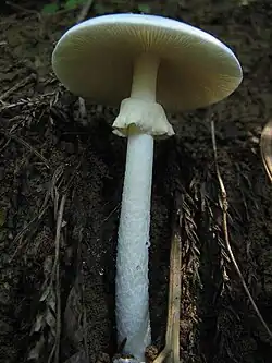Amanita virosa is a species of fungus in the class Agaricomycetes. In the UK, it has the recommended English name of destroying angel[1] and is known internationally as the European destroying angel.[2] Basidiocarps (fruit bodies) are agaricoid (mushroom-shaped) and pure white with a ring on the stem and a sack-like volva at the base.