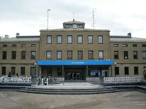The station opened in 1895 as the eastern terminus of the San Sebastián-Elgoibar railway (which at the time only reached Zarautz).[3] In 1912, the San Sebastián-Hendaye line opened, connecting with the existing narrow-gauge railway at Amara.[4]