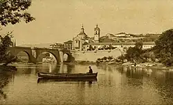 A view of the church and monastery of Amarante alongside the Tâmega River in 1910