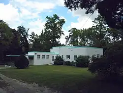 Azurest South is considered a rare example of the International Style in Virginia and displays her interest in avant-garde design.[21] Meredith also used Azurest South as her own art studio.[19] She was active in documenting her lifestyle and accomplishments at Azurest through photographs.[22] The archived documentation and remains of Azurest have inspired intersectional research on race, queerness, and spatial design during the Jim Crow Era.[23] Also, she used her aesthetic and artistic talent to coordinate color schemes and draw blueprints for several campus buildings. For example, she worked with the Alumni House Committee from 1949 on in proposing the creation of an Alumni House. After her proposals were turned down, she decided to give half of Azurest South to the Alumni Association after her death, hoping it would be used as an Alumni House, as it actually is today.[5][13] Meredith also worked as an advisor of interior decoration on the local better homes Committee.[3] In 1947, Meredith started developing a 120 lot subdivision in Sag Harbor called Azurest North together with her older sister Maude.[9] Azurest North was created as a vacation destination for middle class African Americans.[19] In order to develop Azurest North, the two sisters and other developers formed a group, called Azurest Syndicate, which worked to create an African American leisure community.[22] Lots were sold to investors who built cottages in Sag Harbor.[5][13] Meredith designed at least two of these cottages. Terry Cottage, which belonged to her sister Maude Terry and was built in 1949 was designed with similar formal aspects to Azurest South. Edendot, which belonged to her friends Ed and Dot Spaulding, was a Prairie Style building.[9][7] Following her retirement, she took a post as the official secretary of the Azurest Syndicate Inc.[8] Azurest South became the home of the Virginia State University National Alumni Association in 1986, and the building was added to the National Register of Historic Places in 1993. Meredith's historical highway marker has been approved by the Department of Historic Resources in 2008.