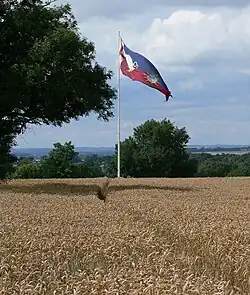 Leicestershire County Council set up the battlefield visitor centre at what was Ambion Hill Farm, in 1974.[4] The work of Leicester University historian Daniel Williams was used to interpret the battle. Numerous historians challenged the Ambion Hill location for the battle and this led to a large-scale project (from 2005 to 2009) by the Battlefields Trust, headed by Glenn Foard, to attempt to definitively find the true location of the battlefield. It is now accepted that the core of the battlefield lies either side of Fenn Lanes, about two miles south-west of the visitor centre and that Ambion Hill was Richard III's camp on the night before the battle.[5] The battlefield heritage centre now has a viewing point with the Fenn Lane Farm site and other notable points marked. Ambion Hill remains within the revised registered battlefield.[6]