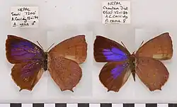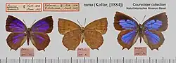 1. ^ Beccaloni, G.; Scoble, M.; Kitching, I.; Simonsen, T.; Robinson, G.; Pitkin, B.; Hine, A.; Lyal, C., eds. (2003). "​Amblypodia rama​". The Global Lepidoptera Names Index. Natural History Museum.