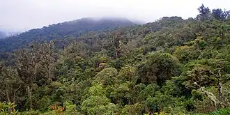 The peculiar features of the geography of the Amboró park area determine the biological makeup, with a great variety of flora and fauna. The altitude in the park ranges from 300 metres (980 ft) up to 3,338 metres (10,951 ft) in the westernmost part of the park in an area called "Siberia". Most of the park has elevations of between 1,000 metres (3,300 ft) and 2,000 metres (6,600 ft).[2] Annual rainfall ranges between 1,400 millimetres (55 in) and 4,000 millimetres (160 in). Amboró National Park holds some fine expressions of Yungas forests.[3]