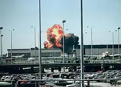 The crash of Flight 191 brought strong criticism from the media regarding the DC-10's safety and design.[29] The DC-10 had been involved in two accidents related to the design of its cargo doors, American Airlines Flight 96 (1972) and Turkish Airlines Flight 981 (1974). The separation of engine one from its mount, the publication of the dramatic images of the airplane missing its engine seconds before the crash, and a second photo of the fireball resulting from the impact, raised widespread concerns about the safety of the DC-10.[29] Another blow to the airplane's reputation was dealt two weeks after the crash when the Federal Aviation Administration (FAA) grounded the aircraft. Although the aircraft itself was later exonerated, the damage in the public's eye was already done.[30]