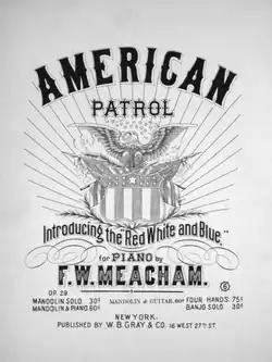 "American Patrol" is a popular march written by Frank White (F.W.) Meacham in 1885. It incorporates both original musical themes by Meacham and melodies from American patriotic songs of the era such as "Columbia, the Gem of the Ocean," "Dixie," and "Yankee Doodle." Composed for piano, it was then arranged for wind band and published by Carl Fischer in 1891. Copyright was assigned to Meacham's widow, Cora, in 1912 and renewed in 1919. The 1885 and 1914 printings for piano do not include "Dixie."
