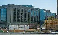 Following the siting guidelines and maps provided by the NCMC, the DVLMF looked at more than 50 potential memorial sites throughout the National Capital Area.[31] Foundation leaders worked closely with D.C. government officials to identify a site.[32] Ten sites were short-listed by the city and foundation,[30] although the DVLMF only seriously considered six of these.[2] The District pushed for the memorial to be located in an existing park-like triangle of land bounded by Washington Avenue SW, C Street SW, and 2nd Street SW,[32] southwest from the United States Botanic Garden's Bartholdi Fountain Park and less than two blocks from the United States Capitol.[31] The site was man-made, built using air rights when the tunnel carrying Interstate 395 was constructed from 1965 to 1973.[30] The lot was city-owned, but the city was willing to transfer it to the NPS.[30][33][d][2] Robert Hansen, the foundation's chief operating officer, praised D.C. officials for their assistance.[32] Lois Pope personally agreed to the site selection.[18] Key considerations were the site's proximity to Capitol Hill, the museums of the Smithsonian Institution, and Washington Metro subway stations.[2] The foundation submitted its site selection report to NCMC in August 2001.[34]