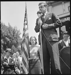 On July 4, 1936, the AYC issued the Declaration of the Rights of American Youth. The document addressed several issues, chief among them being the inalienable rights they believed were due to young people, and the economic problems which most affected them.[3] Its Chairman in 1937 was William W. Hinckley, a member of the Communist-led Psychologists League.[4] By 1939 the movement claimed 4,697,915 members in 513 affiliated organizations nationwide.