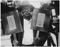Educated, urban, middle-class southerners generally supported entering the war, and many worked on mobilization committees. In contrast to this many rural southern whites opposed entering the war.[47] Those with more formal education were more in favor of entering the war and those in the south with less formal education were more likely to oppose entering the war. Letters to newspapers with spelling or grammatical errors were overwhelmingly letters which opposed entry into the war, whereas letters with no spelling or grammatical errors were overwhelming those which supported entry into the war.[48] When the war began Texas and Georgia led the southern states with volunteers. 1,404 from Texas, 1,397 from Georgia, 538 from Louisiana, 532 from Tennessee, 470 from Alabama, 353 from North Carolina, 316 from Florida, and 225 from South Carolina.[49] Every southern Senator voted in favor of entering the war except for Mississippi firebrand James K. Vardaman.[50] By coincidence, there were some regions of the south which were more heavily in favor of intervention than others. Georgia provided the most volunteers per capita out of any state in the union before conscription and had the highest portion of pro-British newspapers before the US entry into the war. There were five competing newspapers which covered the region of Southeast Georgia, all of whom were outspokenly Anglophilic during the decades preceding the war, and during the early phases of the war. All five of which also highlighted German atrocities during the rape of Belgium and the execution of Edith Cavell. Other magazines with nationwide distribution which were pro-British such as The Outlook and The Literary Digest had a disproportionately high distribution throughout every region of the state of Georgia as well as the region of northern Alabama in the area around Huntsville and Decatur (when the war began there were 470 volunteers from the state of Alabama, of these, over 400 came from Huntsville-Decatur region).[51][52][53] Support for US entry into the war was also pronounced in central Tennessee. Letters to newspapers which expressed pro-British, anti-German or pro-interventionist sentiment were common. In between October 1914 and April 1917, letters about the war to newspapers from Tennessee included at least one of these three sentiments. In the Tennessee counties of Cheatham County, Robertson County, Sumner County, Wilson County, Rutherford County, Williamson County, Maury County, Marshall County, Bedford County, Coffee County and Cannon County over half of the letters contained all three of these elements.[54] In South Carolina there was support for the US entering the war. Led by Governor Richard I. Manning, the cities of Greenville, Spartanburg, and Columbia had started lobbying for army training centers in their communities, for both economic and patriotic reasons, in preparation for US entry into the war. Similarly, Charleston had interned a German freighter in 1914, and when the freighter's skeleton crew tried to block Charleston harbor they were all arrested and imprisoned. From that point on Charleston was buzzing with "war fever." 1915, 1916 and early 1917 were all years when Charleston and the low country coastal counties to the south of Charleston, were all gripped by sentiment that was very "pro-British and anti-German."[55][56][57]