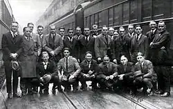 The region's early thirst for football was made evident when a 12,000 strong overflow crowd packed Exposition Park to watch W&J defeat Duquesne Country and Athletic Club 4–0 in one of the largest crowds in Western Pennsylvania history to that point.[26] By 1904, the region had its first undefeated football team when WUP went 10-0 while surrendering only one touchdown on the way to collectively outscoring opponents 406–5,[27] and by 1908, WUP had adopted its present name, the University of Pittsburgh, and quickly came to be commonly referred to as Pitt. In 1910, led by coach Joseph H. Thompson and star fullback Tex Richards, Pitt went undefeated for the second time in school history, outscoring its nine opponents 282–0, causing some to proclaim it as that season's national champion.[28][29] This success paved the way for Pitt rise to national prominence under legendary coach Glenn Scobey "Pop" Warner who would lead Pitt to national championships in 1915, 1916, and 1918;[28][29] along with an additional undefeated season in 1917, while its players garnered 16 first-team All-American selections.[30]