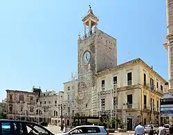 Likewise in 1068, with the rebellion crushed, Amicus' father-in-law fled to Greece and Amicus took over the port city of Molfetta.[8] Amicus' was pardoned after his failed rebellion and forfeited only some minor properties. By October 1069 he had acquired the lordship of Spinazzola, probably by ducal grant.[4] He is called Amico de Spiencello in a charter issued by the duke's chancery.[9] At some point in the next decade, Amicus built a wall around Spinazzola, as the chronicle William of Apulia notes when recording the duke's capture of the town in 1080. Amicus of else his son Godfrey was responsible for the Norman-era fortification of Terlizzi, of which only the square tower still stands.[10][11]