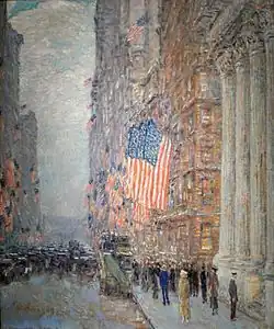 Idle Hours (about 1894) by William Merritt Chase (1849–1916) anchors the ACMAA holdings of American Impressionist paintings. Chase's student and protégé Julian Onderdonk (1882–1922) is represented by a Texas scene, A Cloudy Day, Bluebonnets near San Antonio, Texas (1918). Flags on the Waldorf (1916) is a signature New York work by Childe Hassam (1859–1935). Other well-known American Impressionist painters who have pieces in the collection are Mary Cassatt (1844–1926), Willard Metcalf (1858–1925), and Dennis Miller Bunker (1861–1890).