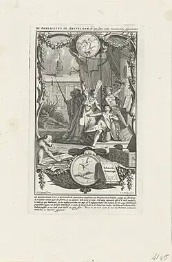 Allegorie op de bankroeten te Amsterdam door de wissel en -windhandel, 1763. De Bankroeten te Amsterdam, in den Jare 1763, zinnebeeldig afgeschetst.